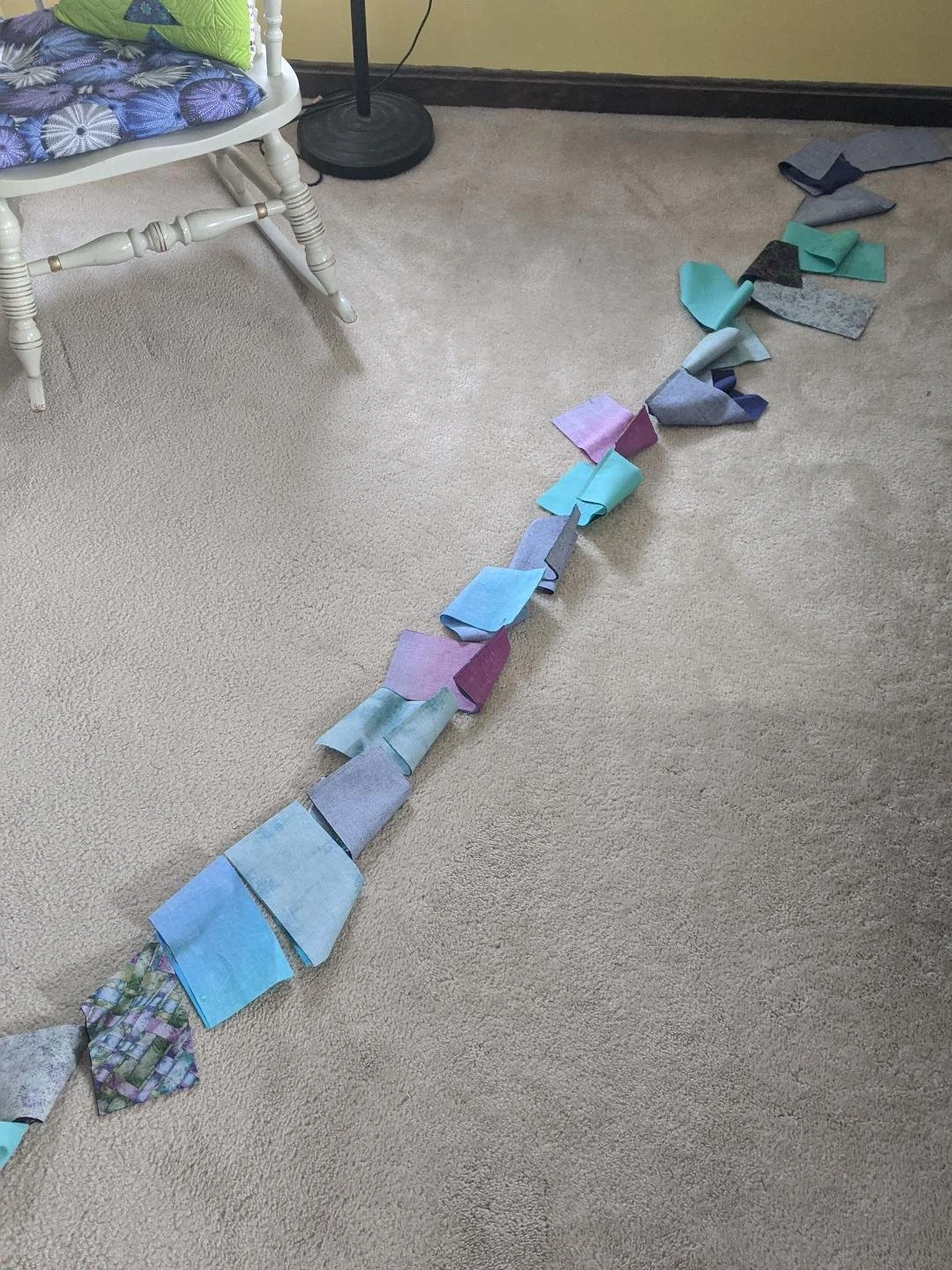 An earlier version of My Jane, and this picture shows the potential for chain piecing the blocks.