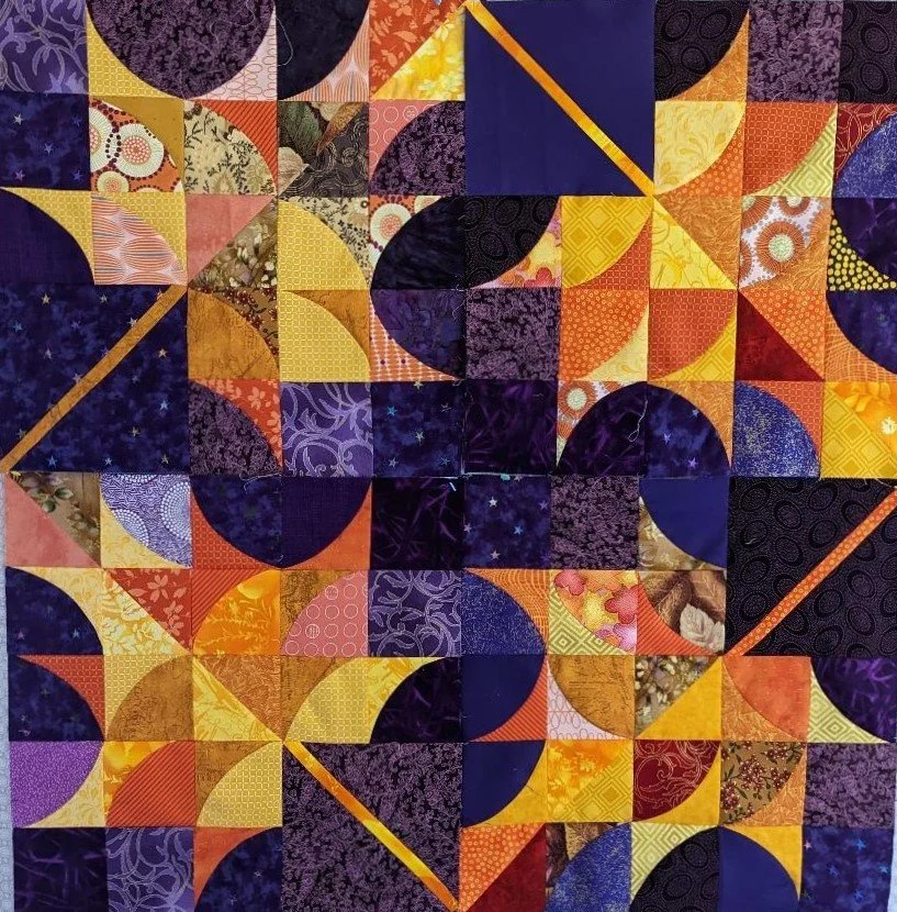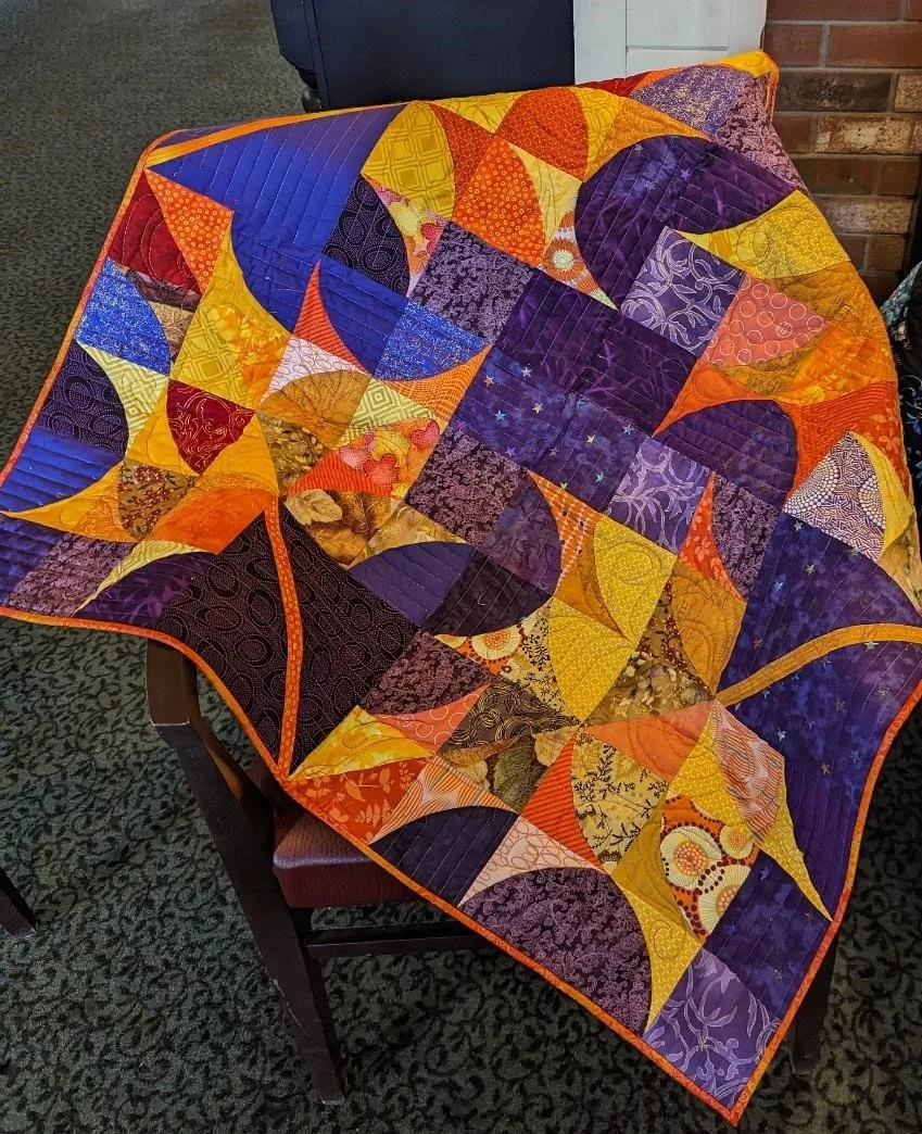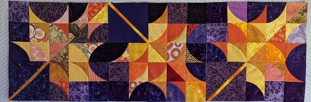 The quilt pattern is called October Eve, and it’s written by Sew Kind of Wonderful. This quilt is made using their Mini Wonderful Curve ruler, and although I’m not supposed to have favorites in the ruler family…this one is very user friendly to use.
