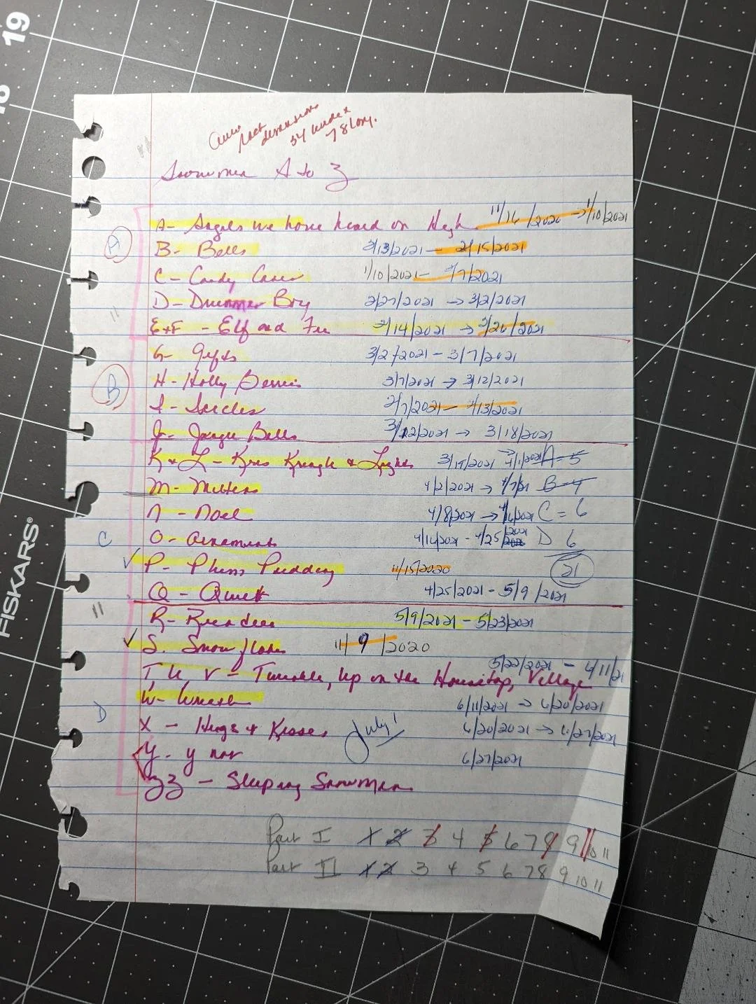 The photo above shows the notes I kept in the Project section of my planner. I don’t always keep notes this detailed, but this is how I know that I began stitching on November 6, 2020 and finished it (20 mins a day) on June 27, 2021. Then I neatly put everything away in the project box…and just kind of left it there.