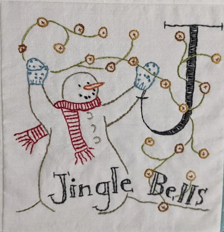 If you’re new, my “Never Ending Embroidery Project’ (pictured above in its’ current state) is actually a pattern by Crabapple Hill Studio called Snowmen A to Z. I purchased it on my first trip to Paducah, and brought it home with me. I don’t remember exactly when the Paducah trip was, but the copyright on this pattern is 2009. So if I guess it was 2010 (ish), then this has been a UFO for about 12 years. I honestly thought it was older.