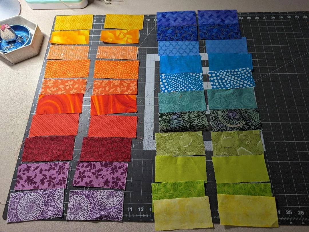 Then I got the email - and a flurry of activities ensued (call the girlfriends, cancel the reservations…the list of details came fast and furious as I had to put the details into a list. On my cutting table were scraps which needed to come together into an Afterquilt - because of course my backing shrunk when I washed it; I was in no mood (read that no good mood) to work on it.