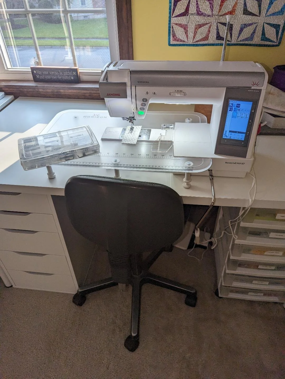 So, after the tsunami of cleaning and decluttering went through, I actually jumped in and decided it was time for an upgrade. My 8900 (which I loved) has actually gone to its’ new home in Vermont with someone who adores all the features it has, and I brought home this one. I’ve never been one to name my sewing machines, but this one is Chanel - because she’s the fifth Janome machine I have owned. Possibly the last, but I wouldn’t want to be hasty now, would i?